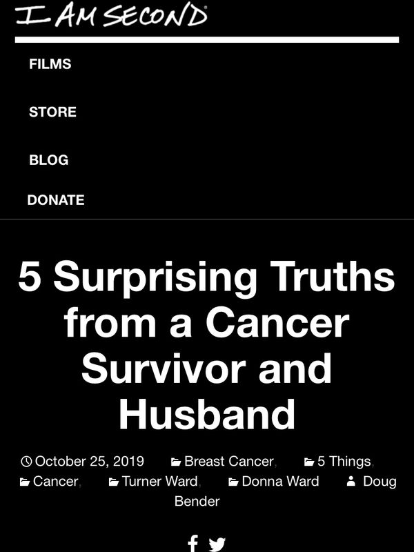 Blog: “5 Surprising Truths from a Cancer Survivor and Husband” (October 25, 2019) - https://blog.iamsecond.com/5-surprising-truths-from-a-cancer-survivor-and-husband